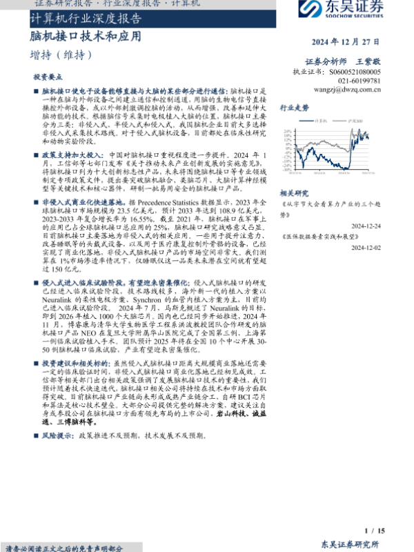 【东吴证券】【20241227】计算机行业深度报告:脑机接口技术和应用-15页