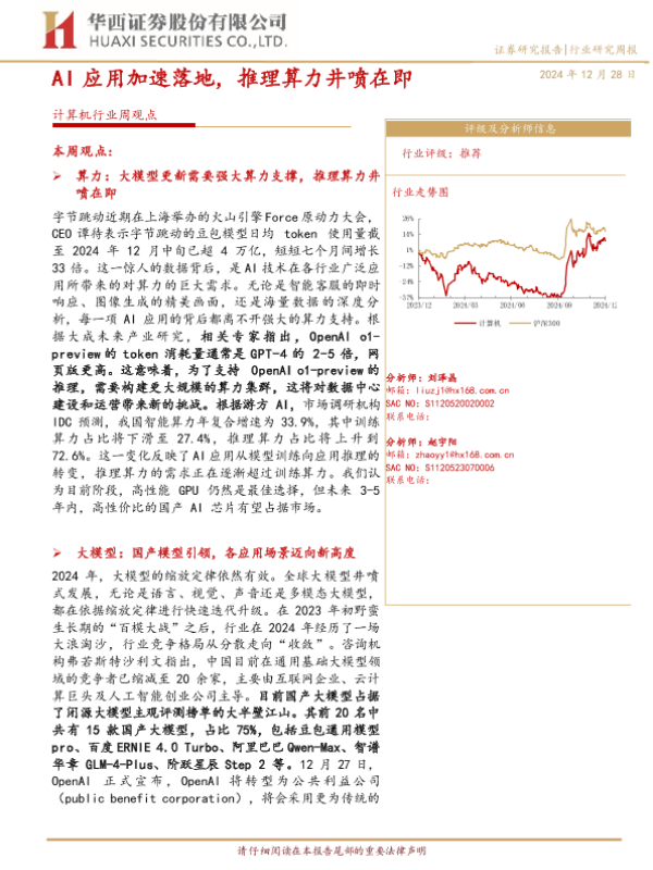 【华西证券】【20241228】20241228-华西证券-计算机行业周观点:AI应用加速落地,推理算力井喷在即-45页