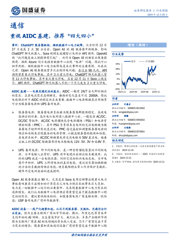 【国盛证券】【20241229】通信行业周报:重视AIDC基建,推荐“四大四小”-15页
