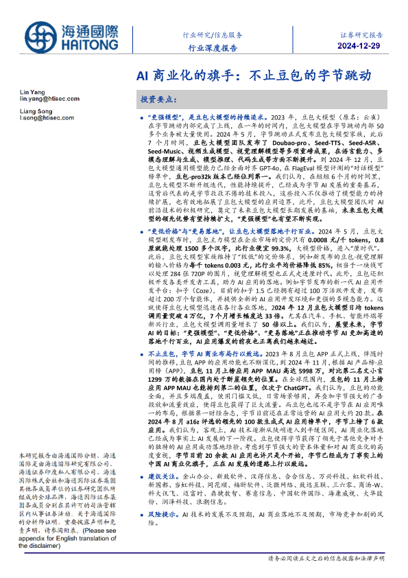 【海通国际】【20241229】AI商业化的旗手:不止豆包的字节跳动-47页