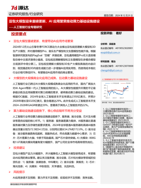 【源达信息】【20241231】豆包大模型迎来重磅更新,AI应用繁荣推动算力基础设施建设-23页