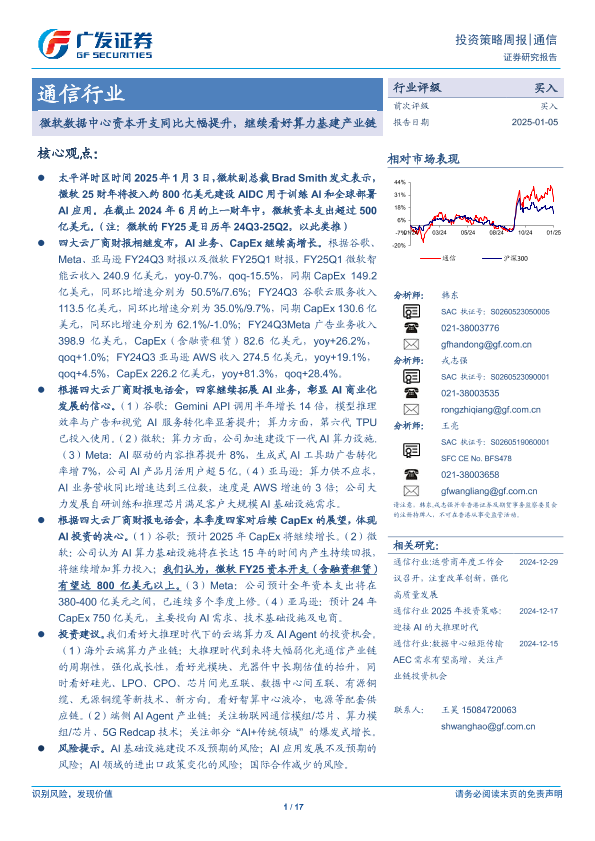 【广发证券】【20250105】微软数据中心资本开支同比大幅提升,继续看好算力基建产业链-17页