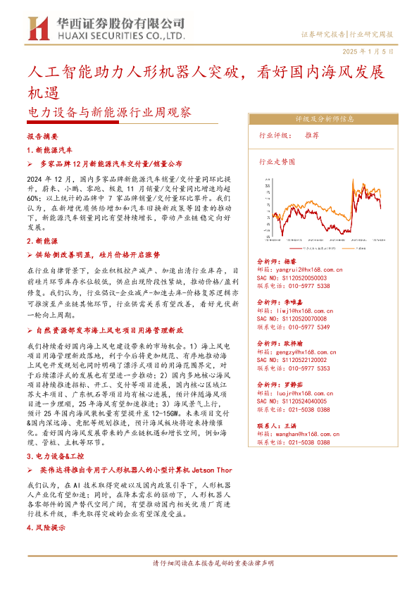 【华西证券】【20250105】电力设备与新能源行业周观察:人工智能助力人形机器人突破,看好国内海风发展机遇-24页
