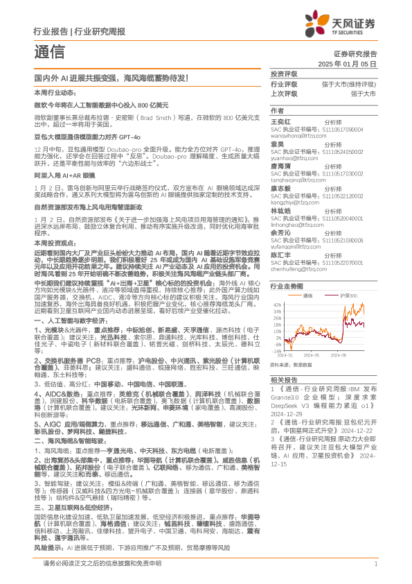 【天风证券】【20250105】通信行业研究周报:国内外AI进展共振变强,海风海缆蓄势待发!-14页