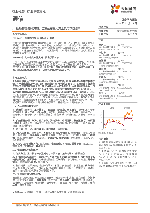 【天风证券】【20250112】通信行业研究周报:AI推动智能硬件涌现,江苏公布重大海上风电项目名单-11页