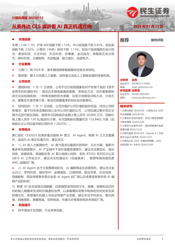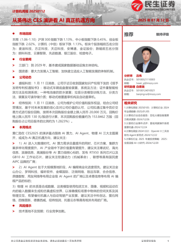【民生证券】【20250112】从英伟达CES演讲看AI真正机遇方向-15页