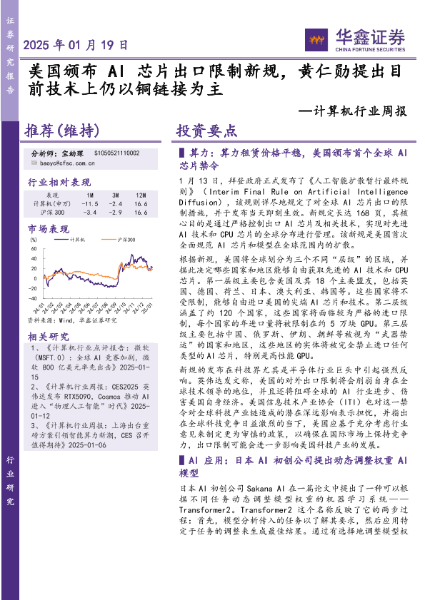 【华鑫证券】【20250119】20250119-华鑫证券-计算机行业周报:芯片出口限制新规,黄仁勋提出目前技术上仍以铜链接为主-15页