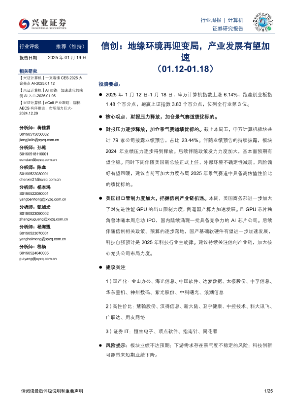 【兴业证券】【20250119】20250119-兴业证券-计算机行业周报:信创:地缘环境再迎变局,产业发展有望加速-25页