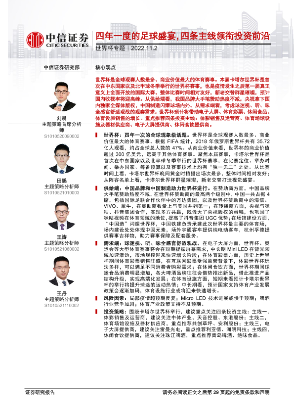 【中信证券】【20221102】世界杯专题:四年一度的足球盛宴,四条主线领衔投资前沿-30页