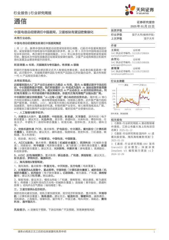 【天风证券】【20250122】通信行业研究周报:中国电信总经理调任中国星网,卫星板块有望迎密集催化-11页