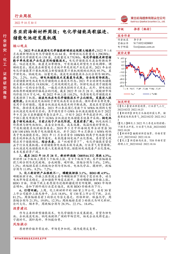 【东亚前海证券】【20221030】东亚前海新材料周报:电化学储能高歌猛进、储能电池迎发展机遇-22页