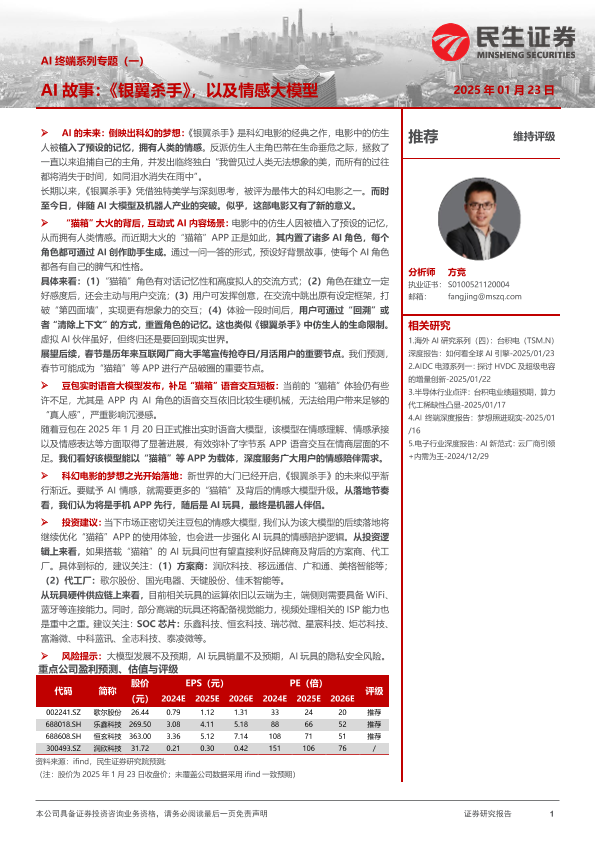 【民生证券】【20250123】AI终端系列专题(一):AI故事:《银翼杀手》,以及情感大模型-22页