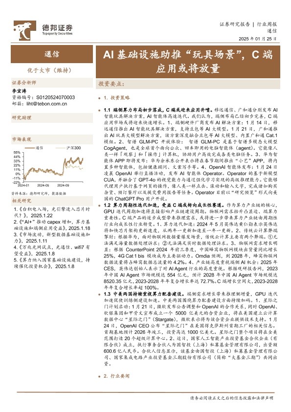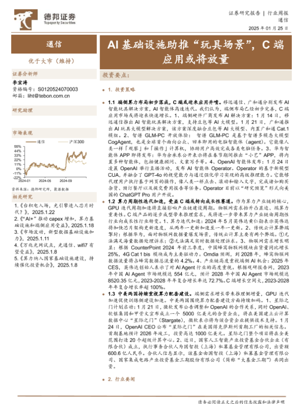 【德邦证券】【20250125】通信行业周报:AI基础设施助推“玩具场景”,C端应用或将放量-18页