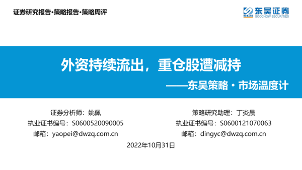 【东吴证券】【20221031】东吴策略·市场温度计:外资持续流出,重仓股遭减持-26页