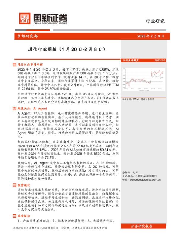 AI Agent 市场回顾 投资建议 通信行业 风险提示
