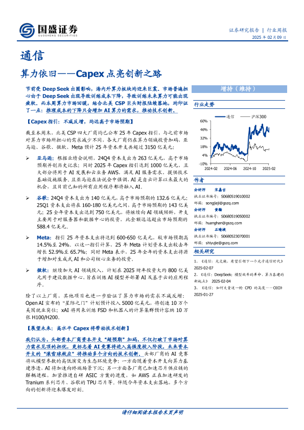 【国盛证券】【20250209】通信行业周报:算力依旧——Capex点亮创新之路-17页