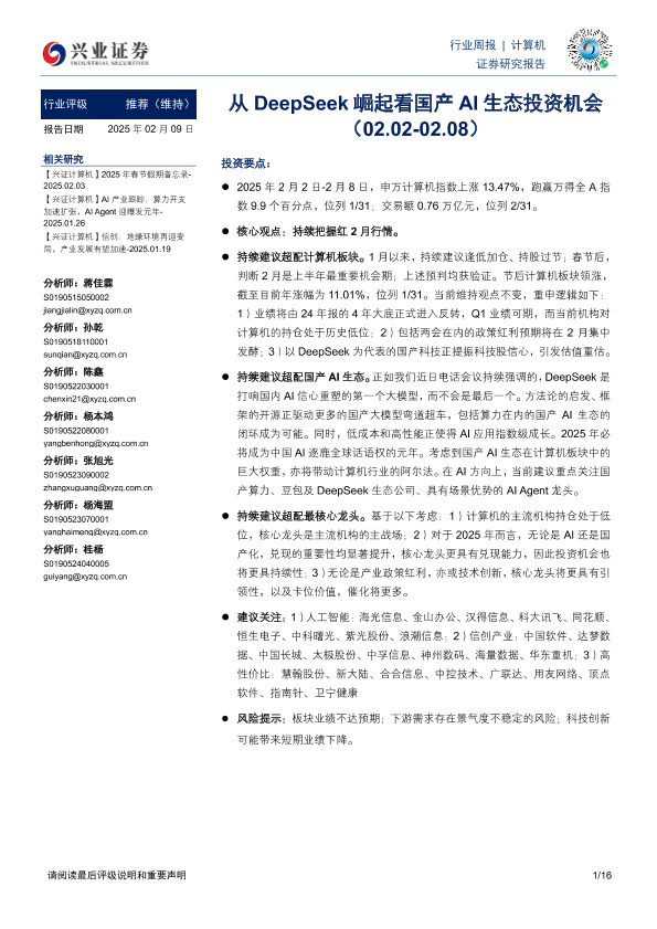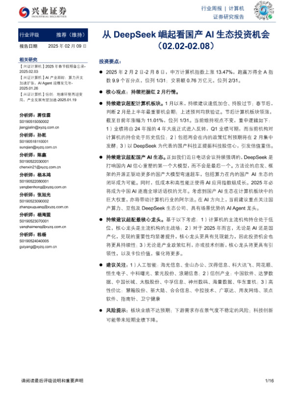 【兴业证券】【20250209】从DeepSeek崛起看国产AI生态投资机会-16页