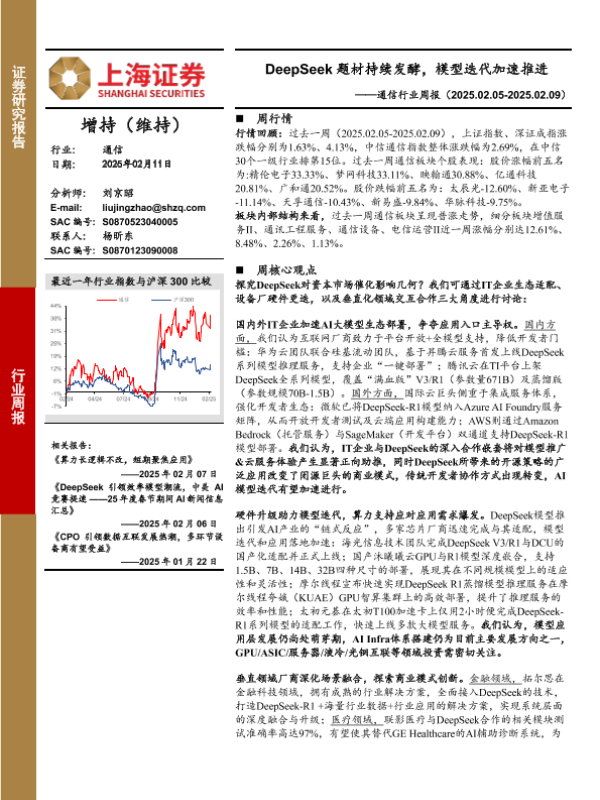 【上海证券】【20250211】通信行业周报:DeepSeek题材持续发酵,模型迭代加速推进-10页
