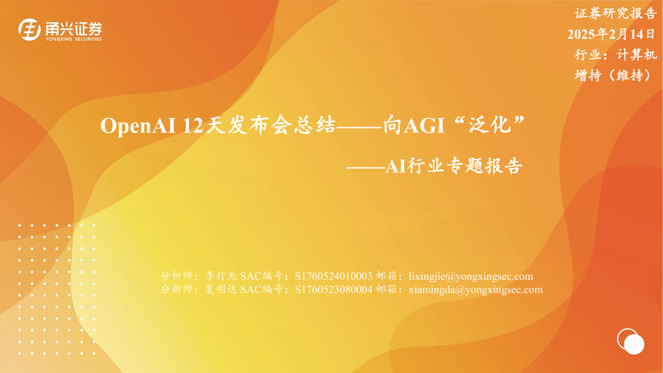 【甬兴证券】【20250214】OpenAI 12天发布会总结——向AGI“泛化”-20页