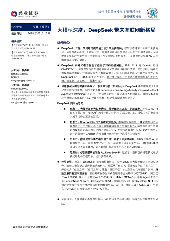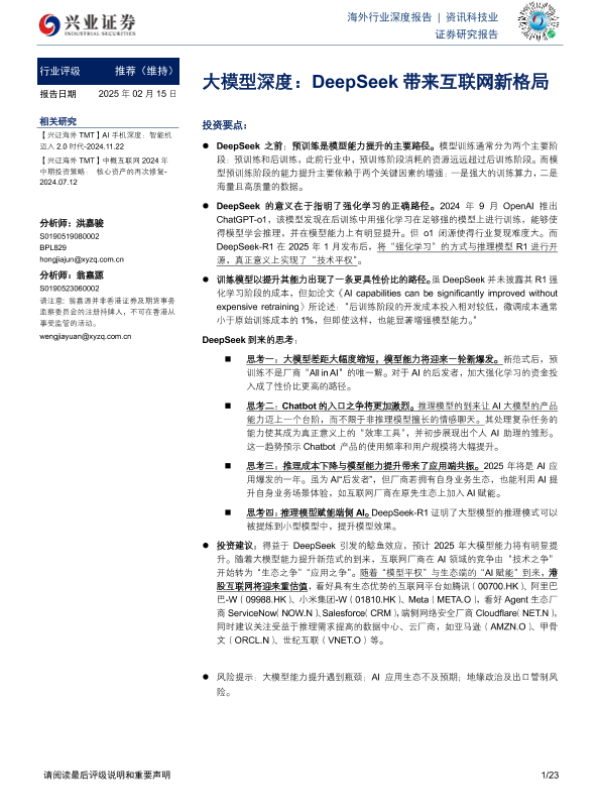【兴业证券】【20250215】大模型深度:DeepSeek带来互联网新格局-23页