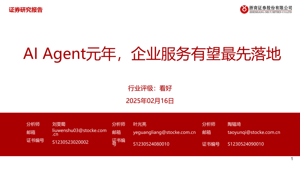 2025 AI Agent 企业服务 计算机 证券研究