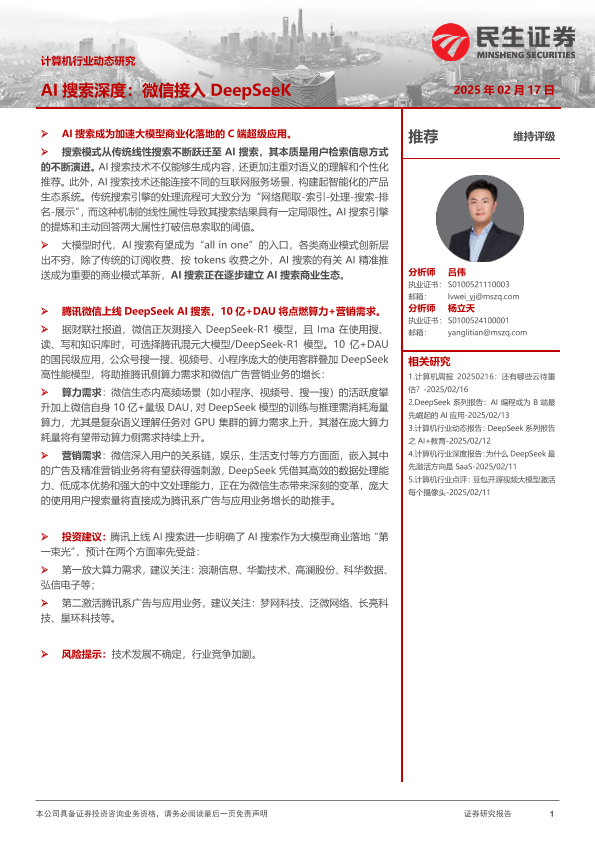 【民生证券】【20250217】计算机行业动态研究:AI搜索深度:微信接入DeepSeeK-11页