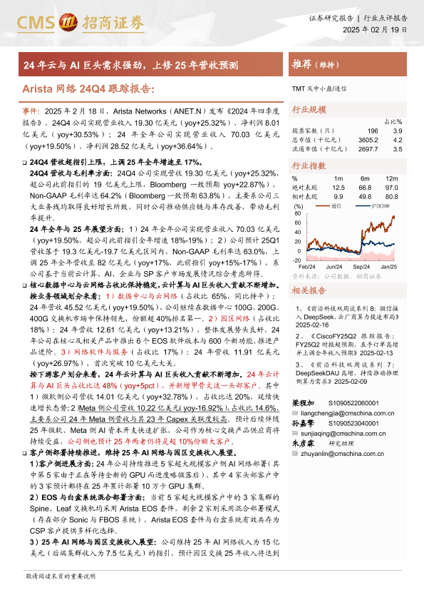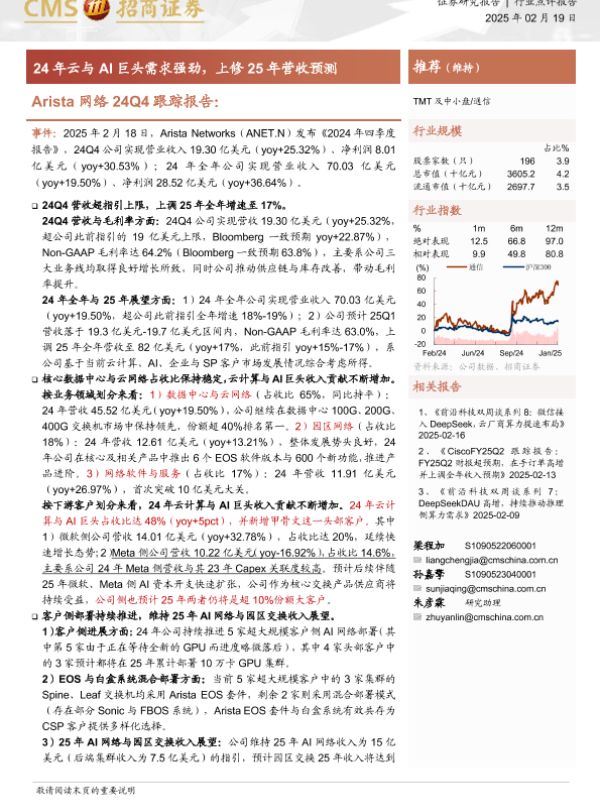 【海通证券】【20250219】Arista网络24Q4跟踪报告:24年云与AI巨头需求强劲,上修25年营收预测-11页