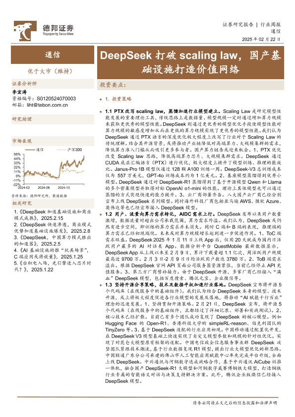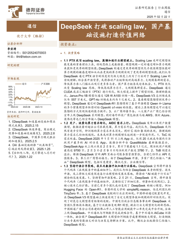 【德邦证券】【20250222】20250222-德邦证券-通信行业周报:DeepSeek打破scaling law,国产基础设施打造价值网络-17页