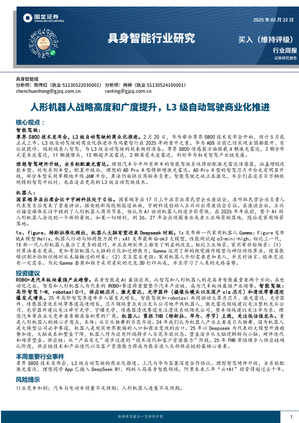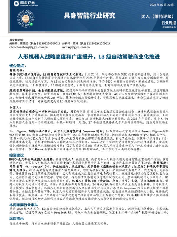 【国金证券】【20250222】具身智能行业研究:人形机器人战略高度和广度提升,L3级自动驾驶商业化推进-11页
