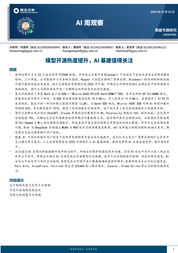 【国金证券】【20250223】AI周观察:模型开源热度提升,AI基建值得关注-10页