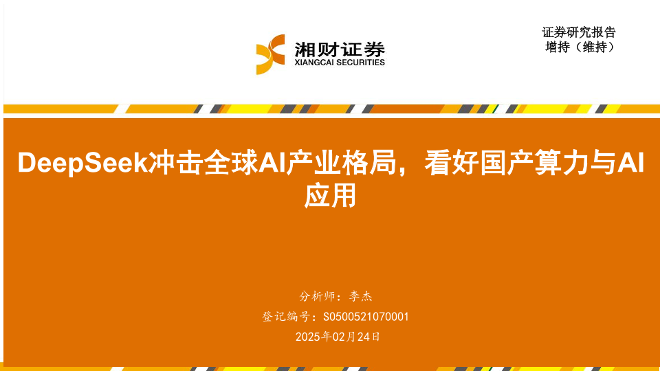 【湘财证券】【20250224】DeepSeek冲击全球AI产业格局,看好国产算力与AI应用-16页