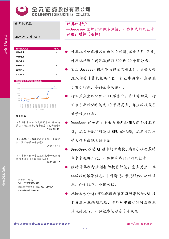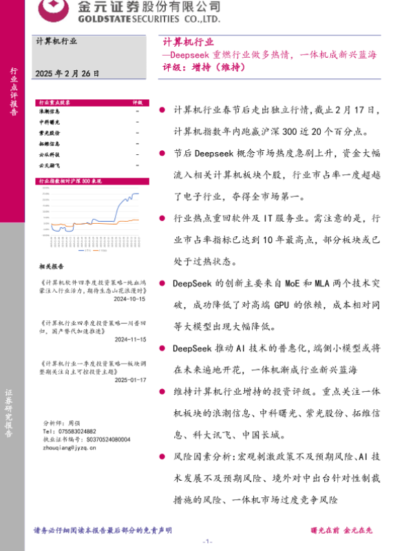 【金元证券】【20250226】计算机行业:Deepseek重燃行业做多热情,一体机成新兴蓝海-26页