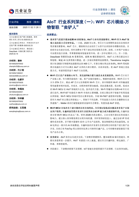 【兴业证券】【20250226】AIoT行业系列深度(一):WiFi芯片模组-万物智联“卖铲人”-28页