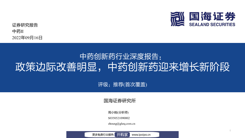 【国海证券】【20220916】中药创新药行业深度报告:政策边际改善明显,中药创新药迎来增长新阶段-79页