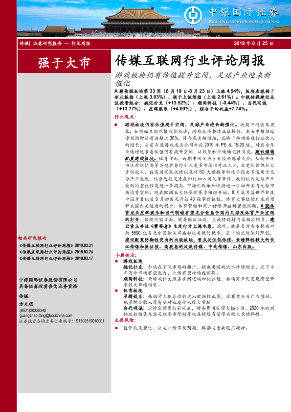 【中银证券】【20190825】传媒互联网行业评论周报:游戏板块仍有估值提升空间,足球产业迎来新催化-21页