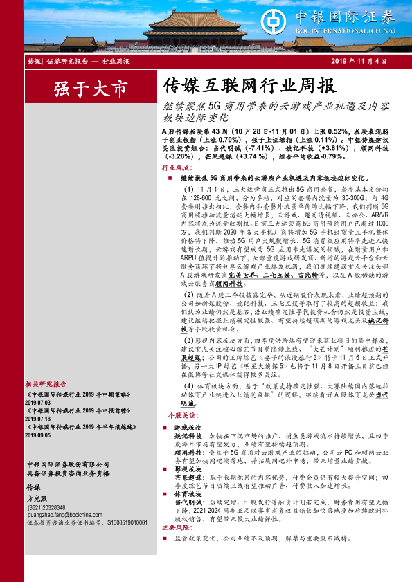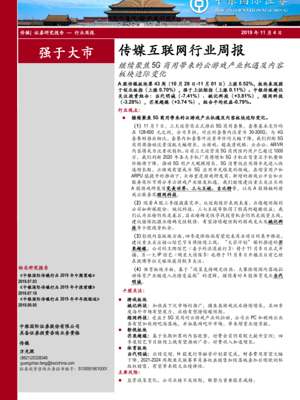 【中银证券】【20191104】20191104-中银证券-传媒互联网行业周报:继续聚焦5G商用带来的云游戏产业机遇及内容板块边际变化-20页