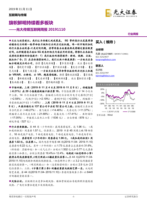 【光大证券】【20191111】光大传媒互联网周报:旗帜鲜明持续看多板块-23页