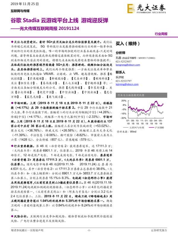 【光大证券】【20191125】光大传媒互联网周报:谷歌Stadia云游戏平台上线 游戏迎反弹-23页