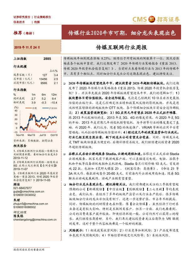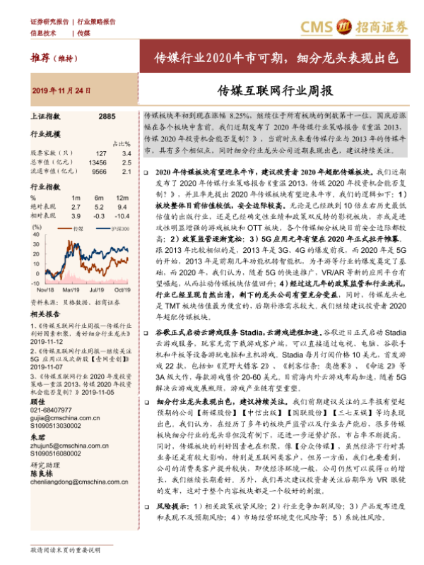 【海通证券】【20191124】传媒互联网行业周报:传媒行业2020牛市可期,细分龙头表现出色-15页