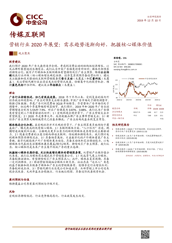【中金公司】【20191210】传媒互联网营销行业2020年展望:需求趋势逐渐向好,把握核心媒体价值-21页