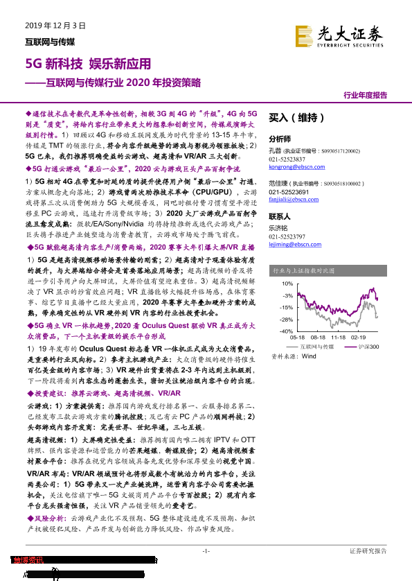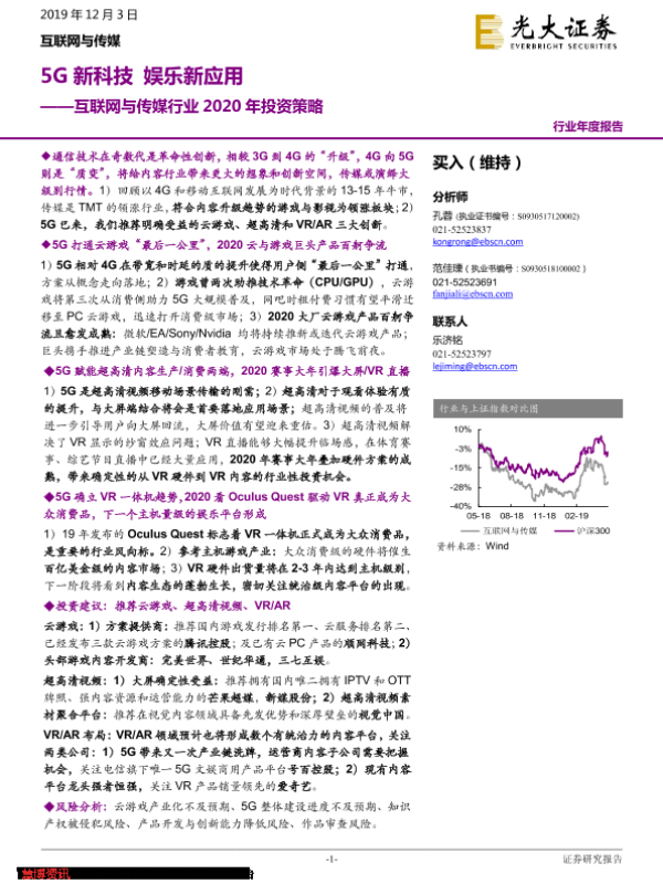 【光大证券】【20191203】互联网与传媒行业2020年投资策略:5G新科技 娱乐新应用-55页