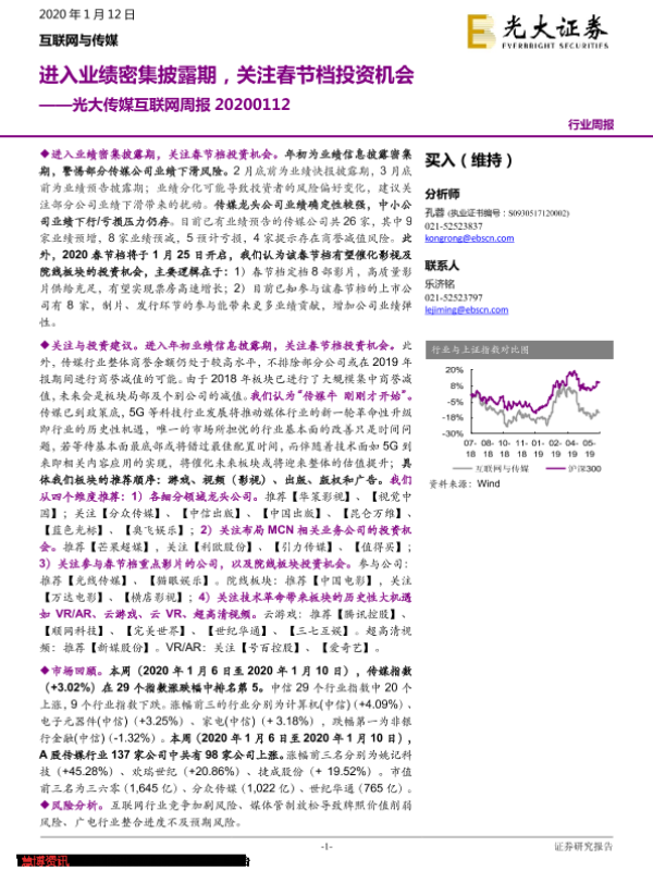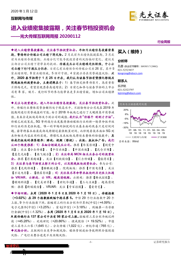 【光大证券】【20200112】光大传媒互联网周报:进入业绩密集披露期,关注春节档投资机会-23页
