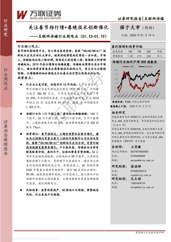 【万联证券】【20200119】20200119-万联证券-互联网传媒行业周观点:关注春节档行情+春晚技术创新催化-12页