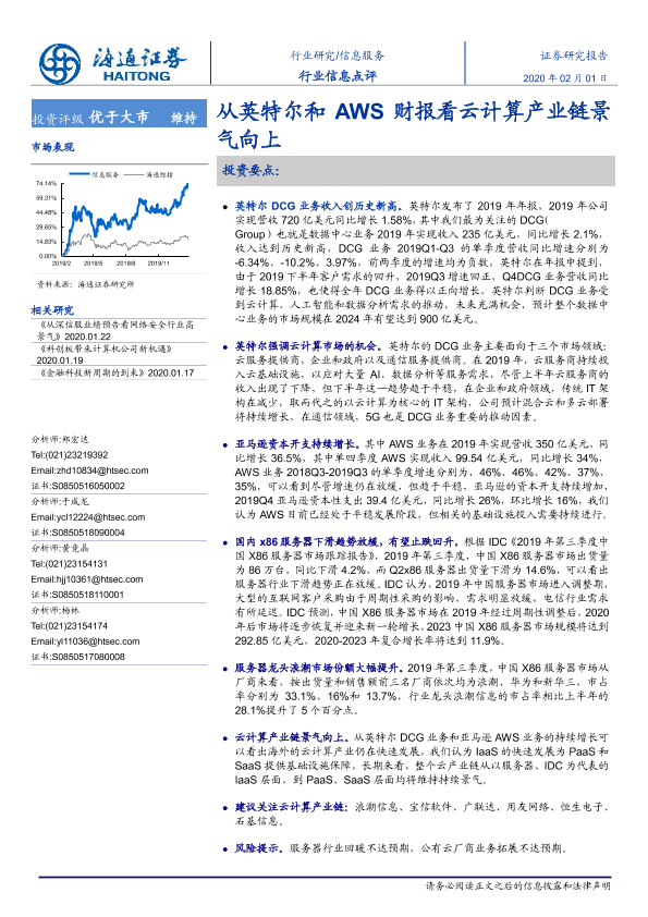 【海通证券】【20200201】从英特尔和AWS财报看云计算产业链景气向上-2页