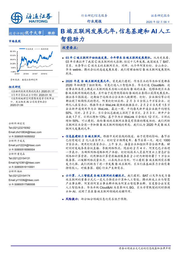 【海通证券】【20200209】信息服务行业周报:B端互联网发展元年,信息基建和AI人工智能助力-5页