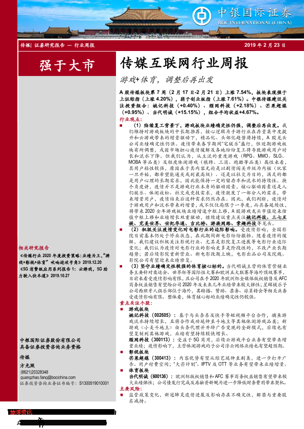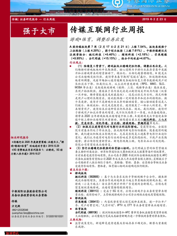 【中银证券】【20200223】20200223-中银证券-传媒互联网行业周报:游戏+体育,调整后再出发-17页