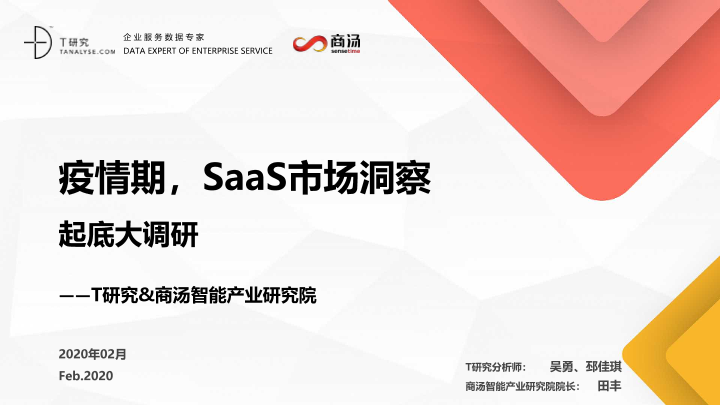 【T研究&商汤智能产业研究院】【202002】疫情期,SaaS市场洞察起底大调研-28页