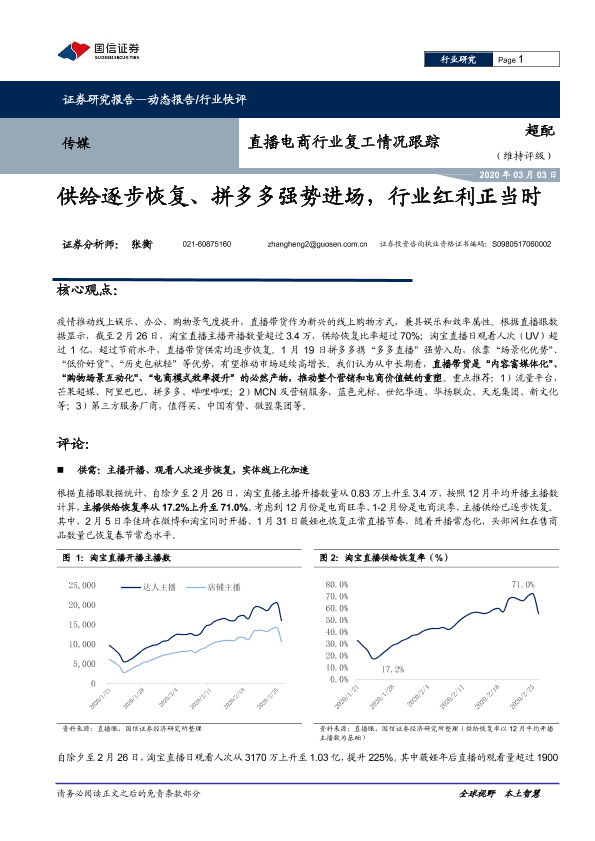 【国信证券】【20200303】直播电商行业复工情况跟踪:供给逐步恢复、拼多多强势进场,行业红利正当时-7页