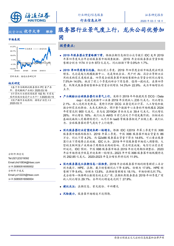 【海通证券】【20200318】信息服务行业信息点评:服务器行业景气度上行,龙头公司优势加固-2页