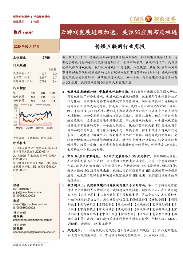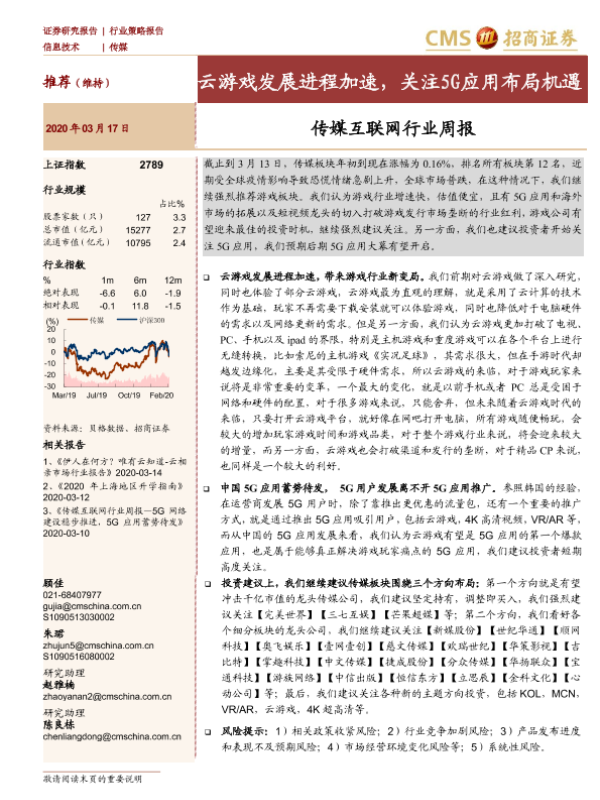 【海通证券】【20200317】20200317-招商证券-传媒互联网行业周报:云游戏发展进程加速,关注5G应用布局机遇-13页